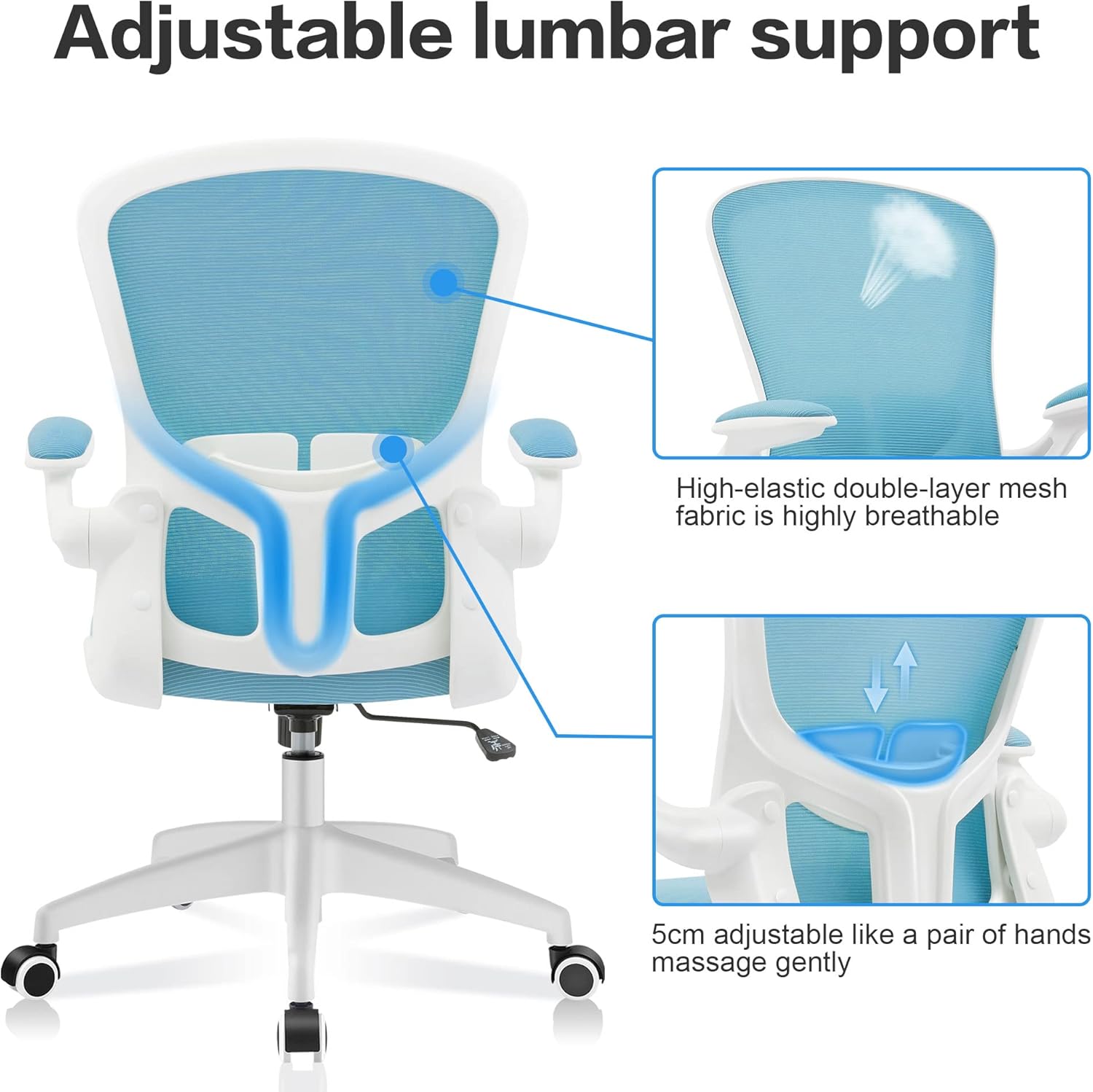Buy Office Chair Felixking Ergonomic Desk Chair With Adjustable Height Swivel Computer Mesh Chair With Lumbar Support And Flip Up Arms Backrest With Breathable Mesh Blue Online In Canada B08mdsqjzl
